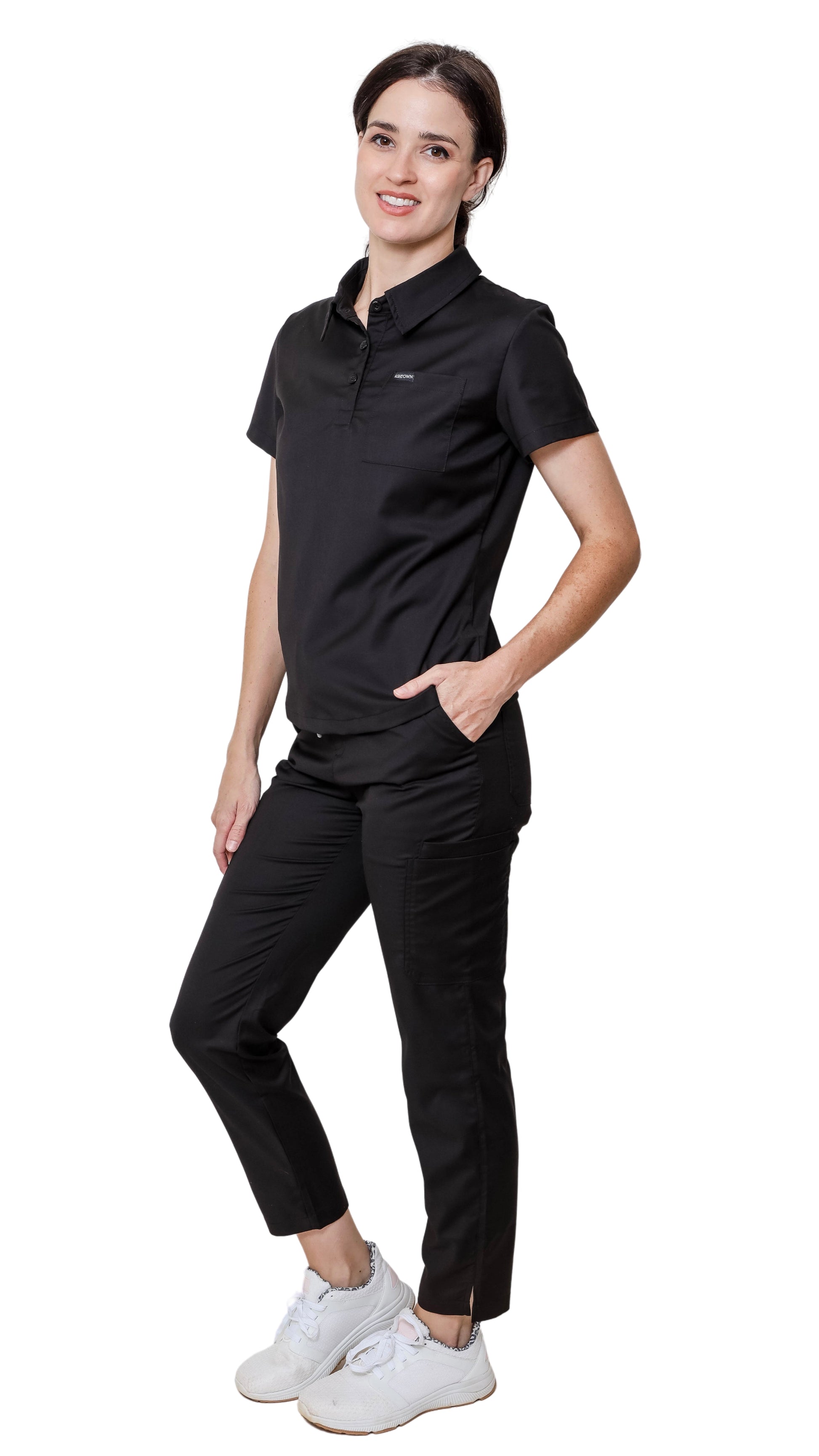 The Dark Polo Scrub Petite Set from Ashtown Clothing is designed for healthcare professionals seeking a sleek, professional, and flattering fit. Perfect for those with a petite frame, this slim-fit scrub set combines style, comfort, and functionality. With free chest logo embroidery, it provides a personalized touch that reflects your professional pride.