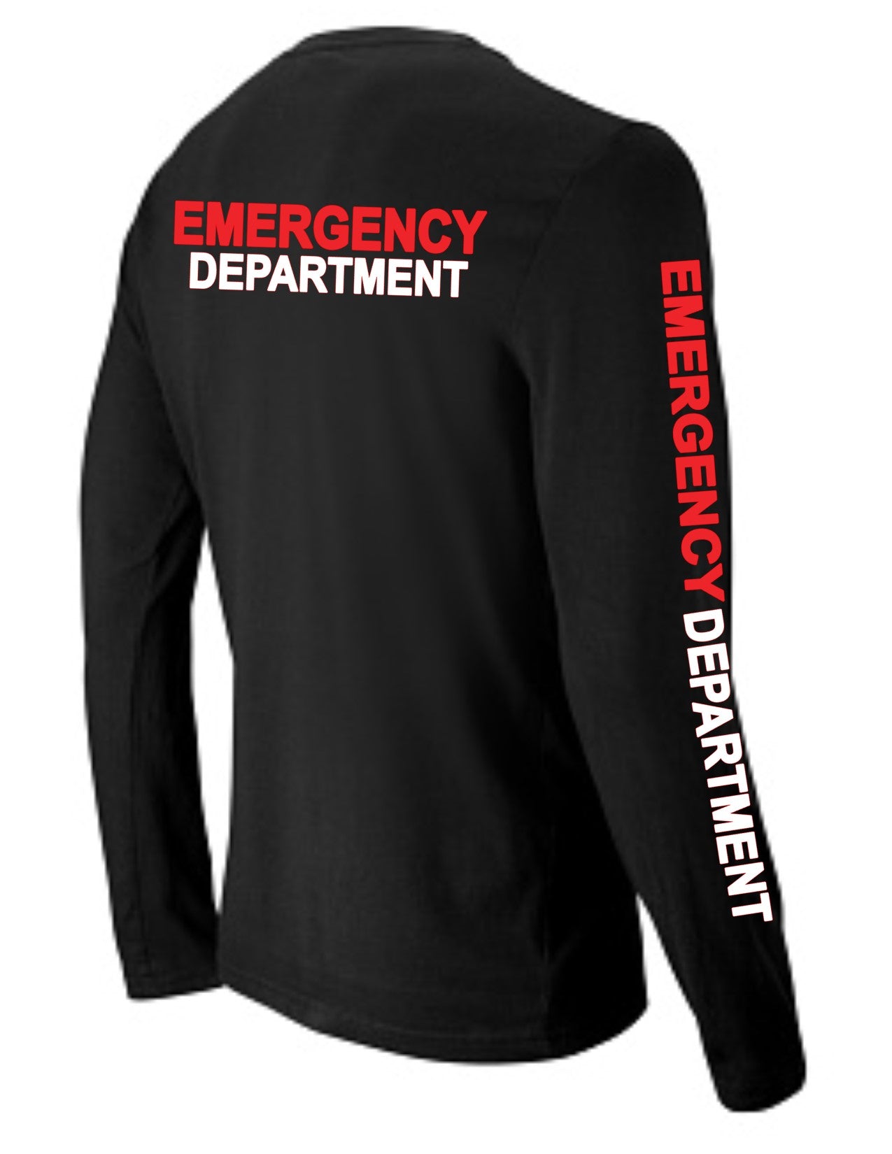 Featuring a bold graphic print with the words Emergency Department and the caduceus symbol, it represents strength, care, and dedication in healthcare. The unisex fit ensures versatility, while long and short sleeve options allow you to choose the right style for every season.